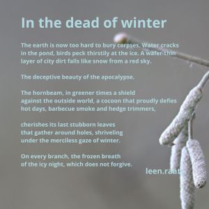 You speak Dutch? So do I. 🙂 Check out my Dutch site at www.leenraats.com where you find more poetry, prose – and you can buy my latest books.